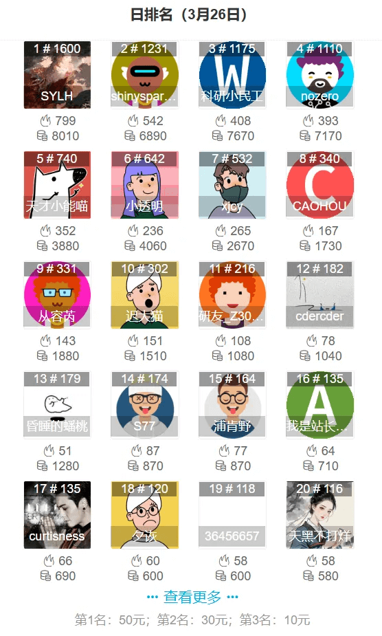 (2)被采纳的有效积分:与应助数的算法相似,但该有效积分与悬赏积分可能不同,以求助对应的最低悬赏积分为准。如某个疑难数据库最低需要200积分,但求助人悬赏了500分,在排名的时候还是以200分计算。