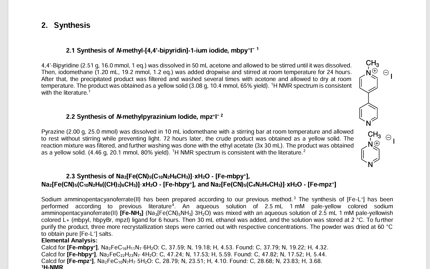 A Heterodox Approach for Designing Iron Photosensitizers: Pentacyanoferrate(II) Complexes with Monodentate Bipyridinium/Pyrazinium-Based Acceptor Ligands的supporting information 部分