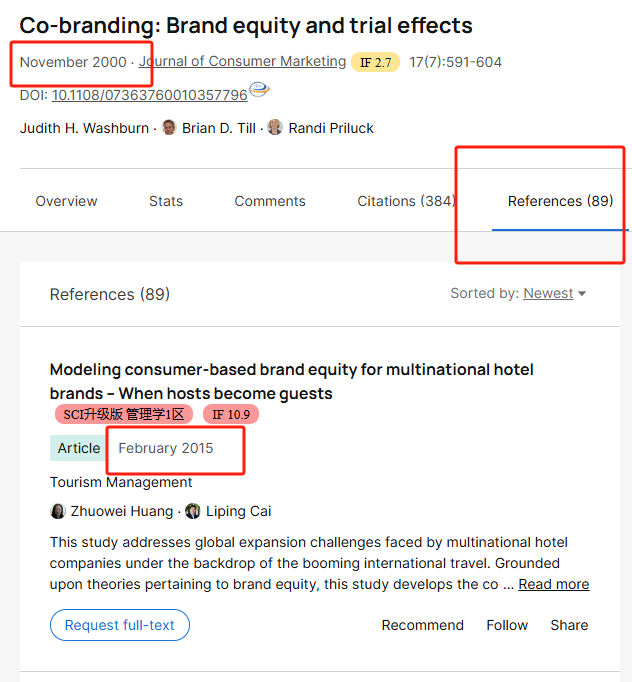 请问researchgate网站里这个references里的文献为什么比上面的文献时间还晚呀,这个references不是参考文献的意思吗?它的参考文献应该不晚于2000年吧?